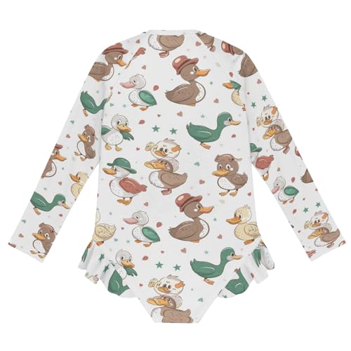 Cute Duck Girls Long Sleeve Swimsuit Rash Guard One Piece Bathing Suits Zipper 3-12T 3