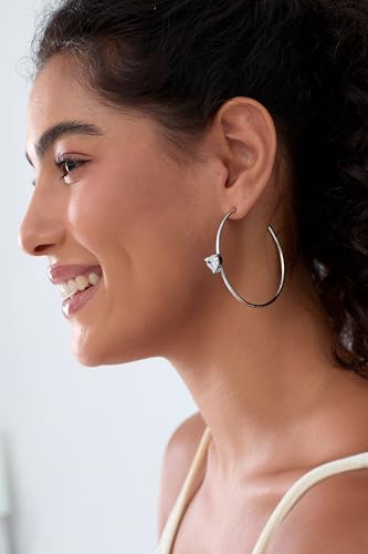 Material: BrassMetal type: BrassBack Finding: Push BackEarring design: HoopGem type: Cubic Zirconia♥Exquisite Design: classic and fashionable design,The large hoop earrings Design of adding heart-shaped cubic zirconia on the basis of classic earrings,you will be more charming and elegant when you wearing these earrings.♥Earrings Size:The big hoop earrings are 50mm(1.97in) in size. .This big open hoops earring is light and easy to wear♥Hypoallergenic Earrings :This large thin hoop earring is made of 925 Sterling Silver pillars plated with 14K real gold to ensure a long lasting finish for women without nickel earrings. This Hypoallergenic lightweight hoop earring is a high-end environmental protection earring with pure silver column. It is a hypoallergenic material, and the wearer is not allergic♥Great Quality:Handcrafted high polished finish gold hoops earrings for women 14K real gold plated, which will keep shining for a long time and make you brilliant to be noticed♥PERFECT Jewelry Gift:This trendy hoop Earring is perfect for any clothing. This design is simple and exquisite, suitable for any occasion. Christmas, Thanksgiving, Valentine's day, birthday, anniversary, mother's day and so on are excellent jewelry gifts for lovers, mothers, friends, sisters, aunts and daughters. Perfect for everyday use. supreme materials and excellent craftsmanship ensure long-lasting durability.