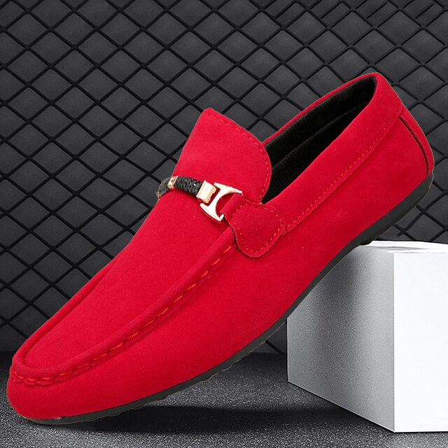Men's Loafers & Slip-Ons Comfort Shoes Walking Vintage Casual Outdoor Daily Leather Warm Height Increasing plush Lace-up Black Red Winter