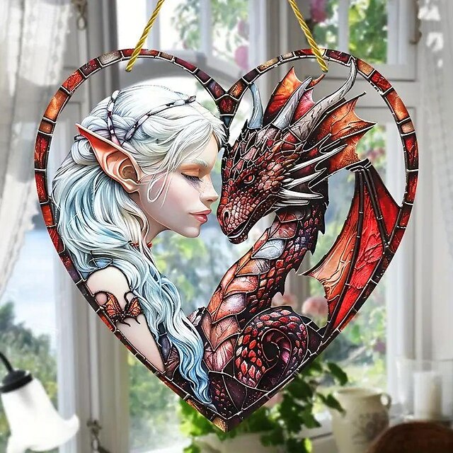 $13.99 - Dragon Girl Heart Shaped Acrylic Sign Sun Catcher & Shade Stained Glass Window Hanging 2025. Shop for cheap Wall Sculptures online? Buy at lightinthebox.com on sale today!