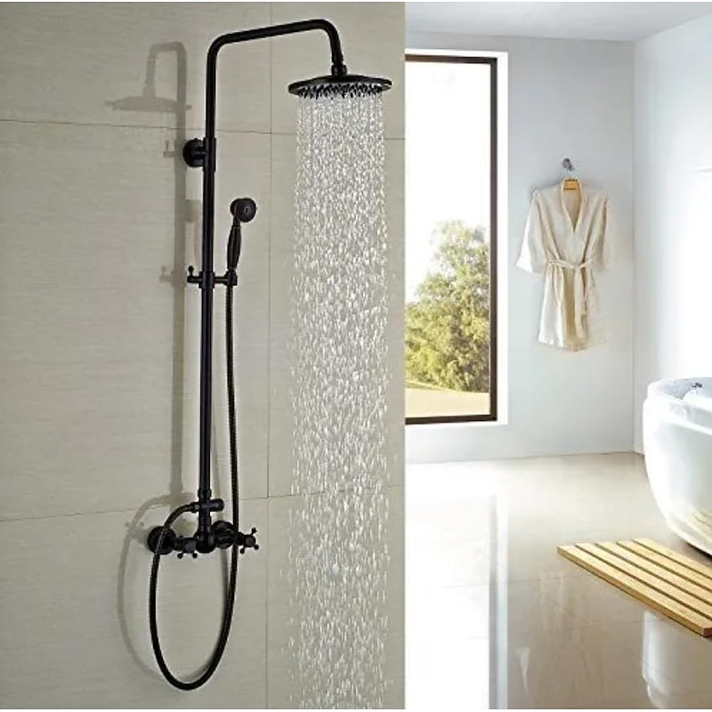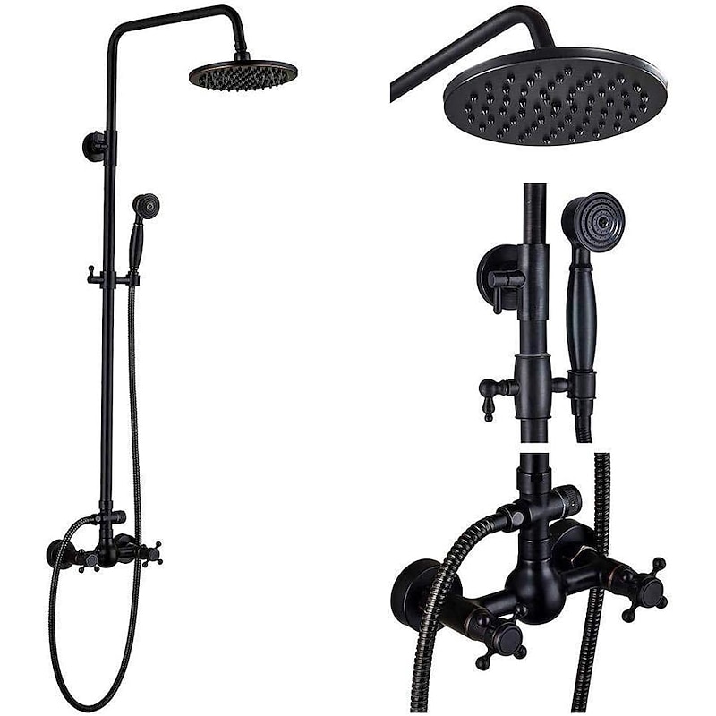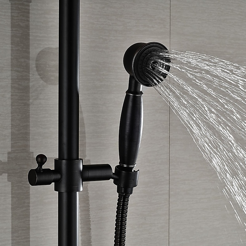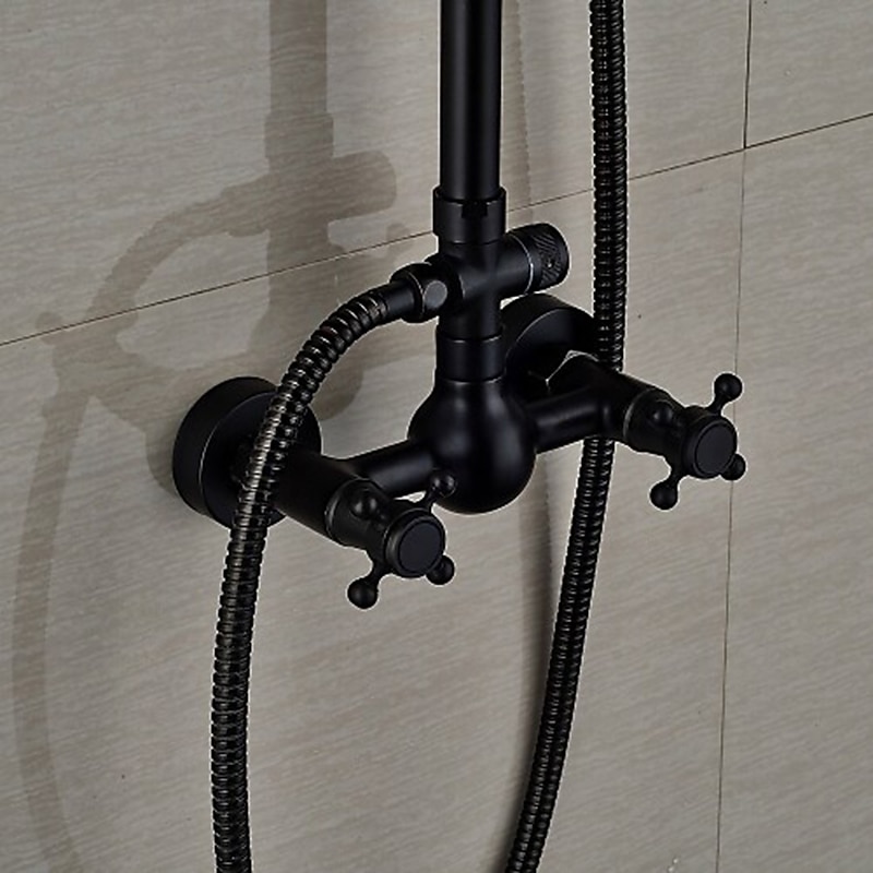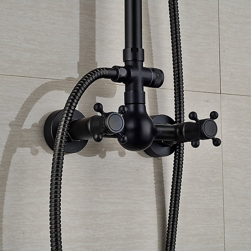 Shower Faucet,Copper Shower System Set Rainfall Antique Oil-rubbed Bronze Two Handles Three Holes Bath Shower Mixer Taps with sought-after and Cold Switch and Ceramic Valve