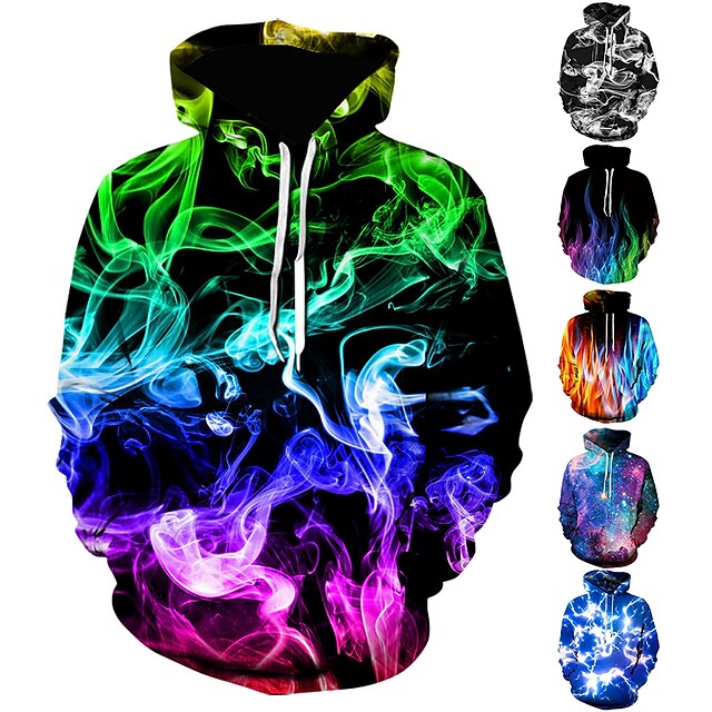 Highlights [Fabric:] Crafted from a soft and comfortable polyester blend, this menβs hoodie is designed for durability and ease of wear. The high-quality fabric is perfect for maintaining warmth and a cozy feel during the fall season. [Fit:] This hoodie offers a relaxed fit with its classic pullover style, ensuring comfort for daily wear. The long sleeves and adjustable drawstring hood enhance its versatile and laid-back look, suitable for varying weather conditions. [Design Highlights:] Featuring a bold 3D print, this hoodie flaunts a dynamic blend of swirling, smoke-like patterns in vibrant colors such as neon greens, blues, fiery oranges, and purples. The spacious front pocket adds both functionality and style, perfect for storing essentials or keeping hands warm. This piece is a standout choice for those looking to make a fashion statement and express their exclusive style. [Occasion:] Ideal for daily outings and streetwear ensembles, this designer hoodie adds an artistic flair to any casual look. Its striking prints and comfortable fit make it suitable for social gatherings, relaxed weekends, or simply adding a fashionable edge to everyday attire. [Size Range:] Available in a wide range of sizes from S to 5XL, this hoodie accommodates various body types, offering a comfortable fit for everyone. Its inclusive sizing ensures that finding the perfect fit is effortless, catering to personal preferences and style needs. Perfect for everyday use. excellent materials and excellent craftsmanship ensure long-lasting durability.
