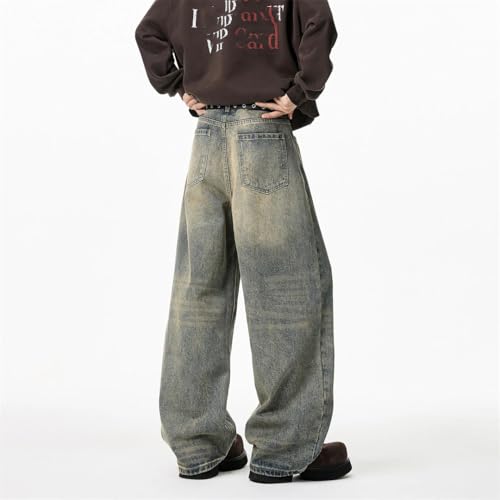 Mens Loose Straight Wide Leg Jeans Washed Oversized Floor Length Denim Pants